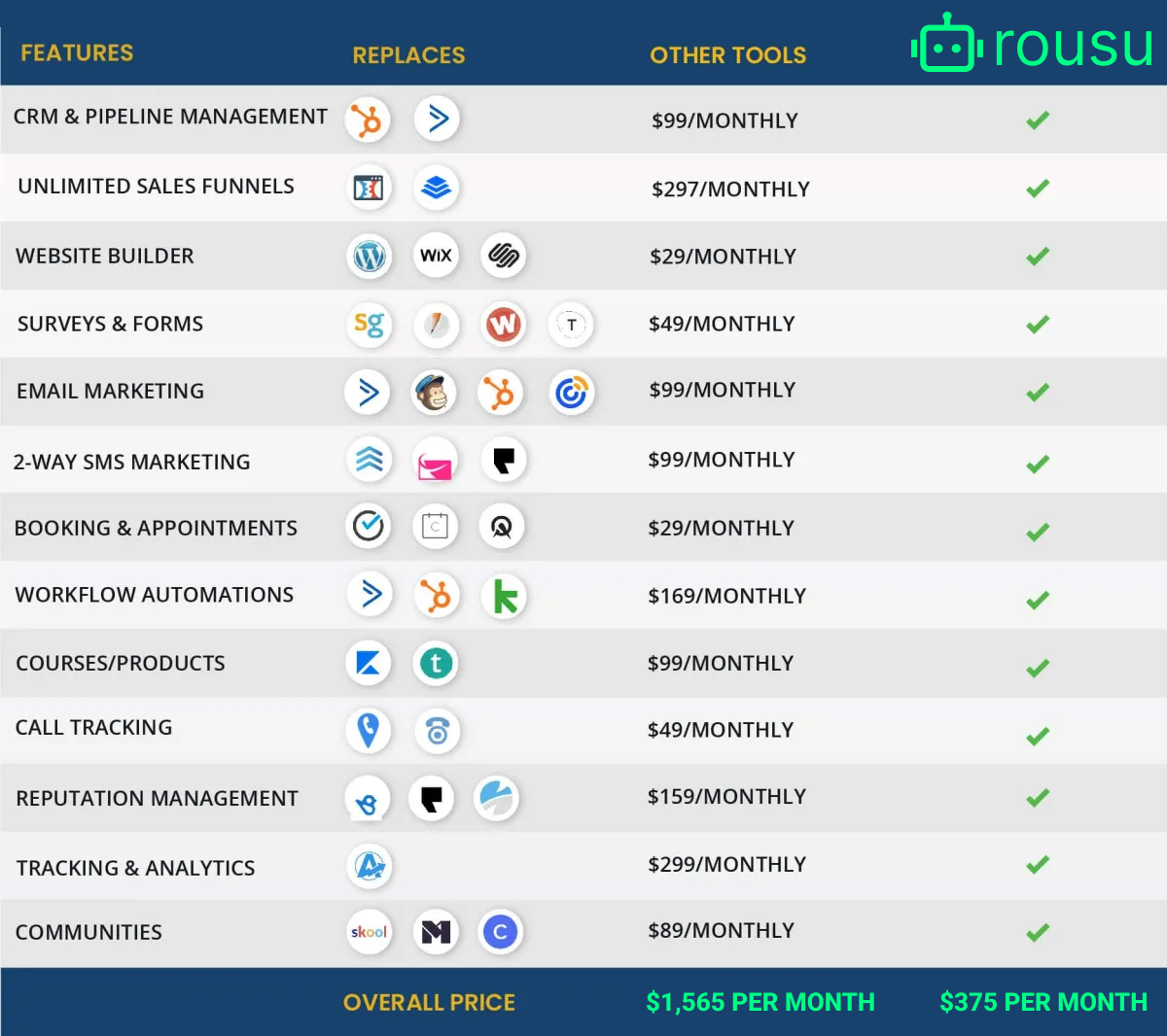 Rousu was built to replace the world's largest CRM's and Sales & Marketing tools all inside one platform.